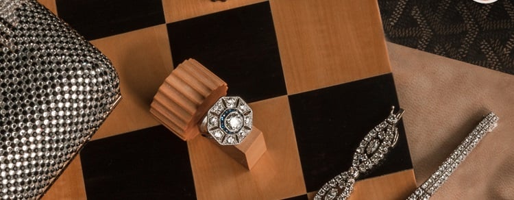 Lot 100: An Art Deco Diamond & Sapphire Ring in Platinum