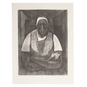 Incredible printmaker, painter and educator, Samella Sanders Lewis, is represented with three dazzling pieces. (Lots 903, 904, 905) These lots offer a variety of styles of the artist’s work as well as a range in price point. The soft palette and geometry of “Cleo” make this work stand out.