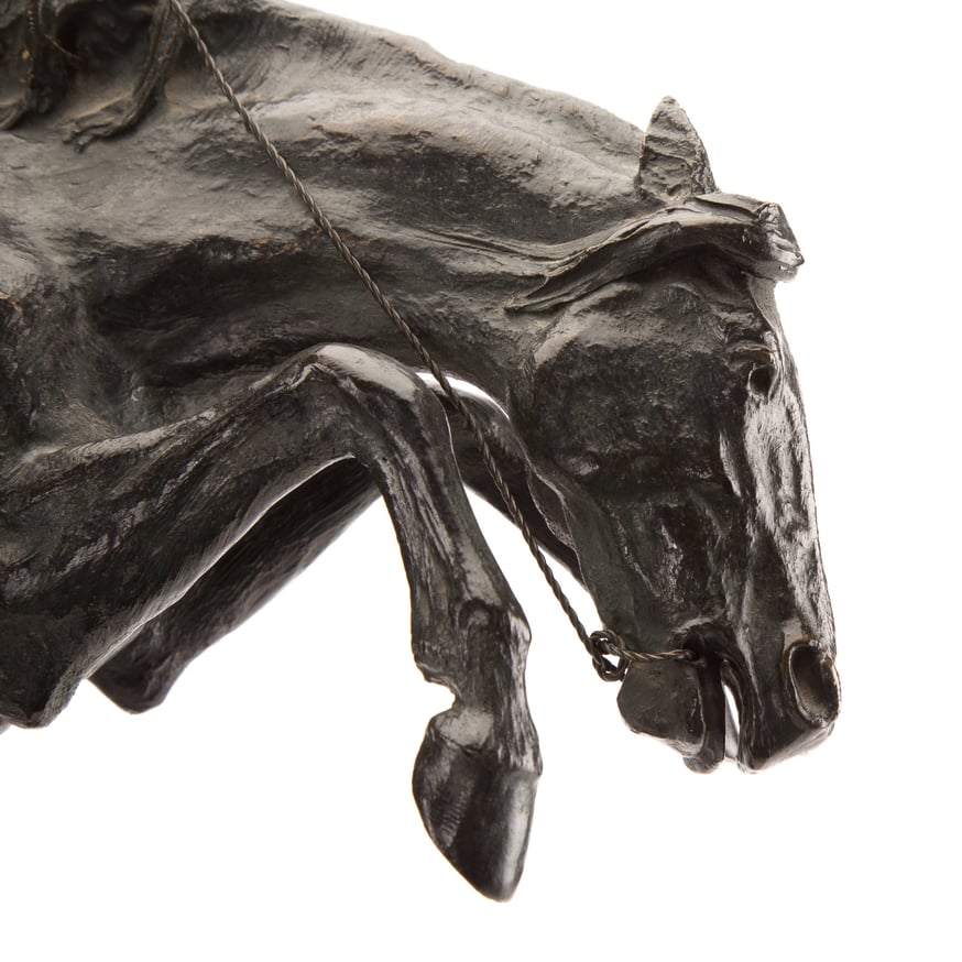 Born in Canton, New York, Frederic Remington became the foremost turn-of-the-century illustrator, painter, and sculptor of western action-packed subjects with cowboys, Indians, horses, soldiers, and other frontier characters. During his lifetime, Remington created twenty-two bronzes with the most famous being The Broncho Buster. Ever-fascinated by the motion of horses, in 1895, Remington began working in bronze and created the first sand-casting of The Broncho Buster with the Henry-Bonnard Bronze Co.
