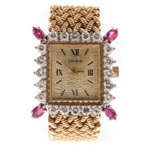 Bring on the drama with lot 197: a diamond and ruby cocktail watch by Geneve. “The cocktail watch evolved out of the notion of cocktail hour wardrobe…Cocktail attire was meant to display one’s tastes, personality, social status, and also to serve as a conversation piece.”¹