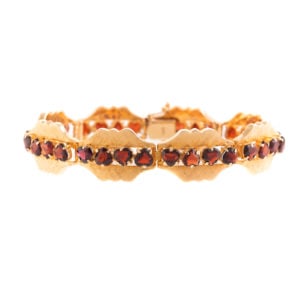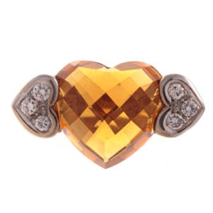 Lots 149 and 168 will have you layering with love! This romantic duo features a heart-shaped citrine & diamond ring in 18K, paired with a 14K link bracelet with garnet hearts.
