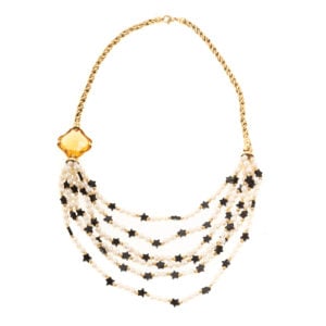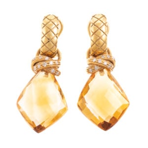 Now for the citrine of your dreams, lot 157: a 18K diamond & citrine drop earrings and lot 158: a pearl, citrine & black onyx necklace in 18K. This gorgeous necklace features 6 nesting strands of cultured pearls and star black onyx beads and a fantasy cut diagonal citrine.