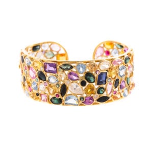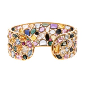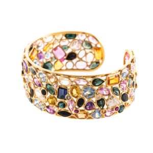 Saving the best for last, lot 166: a wide gemstone and diamond cuff bracelet. I imagine this bracelet being worn on the opera stage, sparkling from every facet as the stage lights illuminate all of the colorful gems. This bracelet is set in 18k with diamonds, sapphires, amethysts, pink and green tourmaline citrine, blue topaz, tanzanite and garnets.