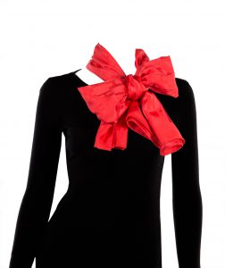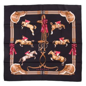 Black & red 90 cm silk scarf with ”Jumping” motif and hand rolled edges, in the original box.