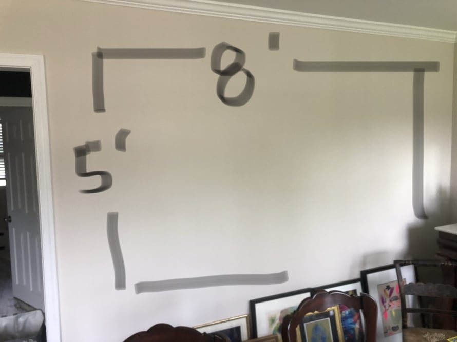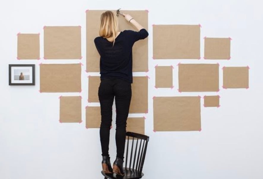 A Salon Style gallery wall will be a good companion to this statement piece as it sits opposite.  You will need enough of a wall to really make a statement and I will be working with roughly an open space of 5’ x 8’.
