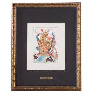 We complete our Dali auction offerings where we began, back at the Divine Comedy. Here we have “Greed, Purgatory, Canto” and “Dante Purified, Canto #33.” This duo is beautifully framed and the perfect start to a collection of Dali’s.