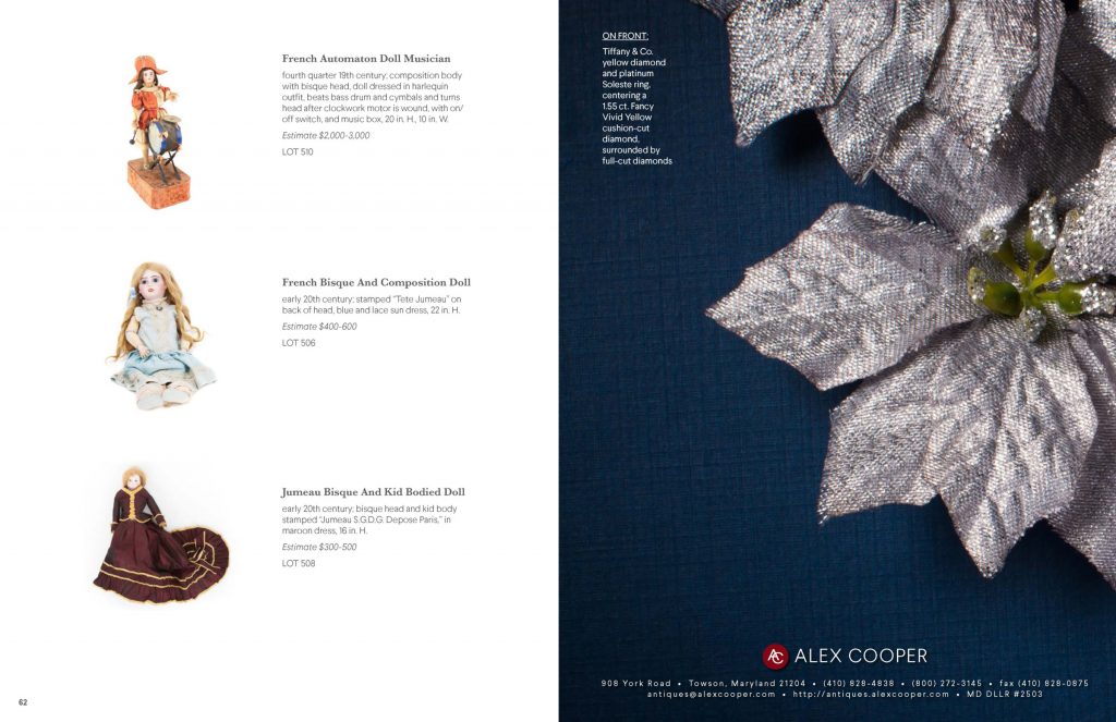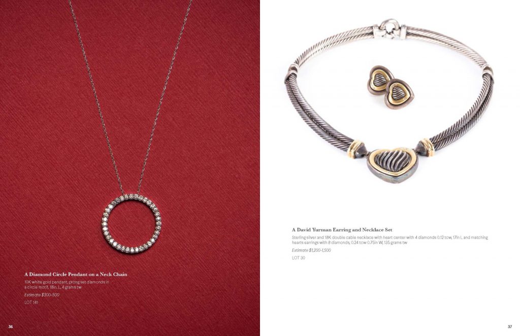 Join us on December 10th at noon for an incredible gallery auction, featuring: jewelry, silver, dolls & toys and collectibles. Because there are so many fabulous items in the upcoming sale, we created a special highlight catalog to show them off. Some of my favorite items include a Christian Dior Diorissimo handbag, a silk Hermes scarf, a Tiffany & Co. Soleste ring and a David Yurman earrings and necklace set. Did I mention the collection of solitaire diamond rings? If you need a fabulous holiday gift, or perhaps even an engagement ring, look no further, we’ve got you covered. Click here for bidding and more information about the sale.