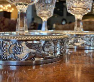 Alex Cooper Auctioneers is honored to offer Imperial silver from Eugène de Beauharnais, his son Maximilian and other descendants of the de Beauharnais family. This is a rare opportunity to acquire Imperial objects with an impressive lineage and direct line of provenance. Eugène’s Imperial monogram is visible on lots 423-430. Maximilian, his son and 3rd Duke of Leuchtenberg, married Grand Duchess Maria Nikolaevna of Russia in 1839, the same year the creamer represented in lot 431 was made. It bears Maximilian’s Imperial monogram and perhaps was a wedding gift, later separated from a larger tea and coffee service. The charming tea caddies in lot 433 also bear his Imperial monogram. The simplicity of form and function of this collection is challenged with the high Empire style of lots 438 and 439. They do not bear an Imperial monogram but they tell a story of sumptuous living. These objects are a glimpse into a bygone life of nobility, one of privilege and refined beauty. Alex Cooper hopes you take the opportunity to view this collection and appreciate its significance and representation of history.