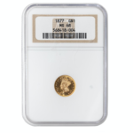 Thirteen coins in the collection were minted at Charlotte and Dahlonega. Gold discoveries in the 1830s at Dahlonega, Georgia, and Charlotte, North Carolina, prompted the US Treasury to establish mints and produce gold coins at these two locations. They are always the highlight of any sale because a C or D means a rare coin, often minted in small quantities, such as the 1854-D NGC AU58 CAC $3 Princess (lot 615). The mintage of 1,120 makes it, aside from the unique 1870-S, the rarest and most expensive $3 gold piece across all grading levels.