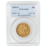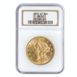 There are three nice $20 Double Eagles in the sale, starting with an 1875-CC (lot 629) from the Old West’s Carson City mint in NGC MS62. One can only imagine what poker tables this might have crossed.