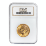 Our $10 Gold Eagles have several coins worthy of special mention. The 1874-S PCGS AU58 (lot 626) also has the Harry Bass pedigree. At AU58, it is close to finest known; perhaps just one coin is known in uncirculated condition. The 1879-O (lot 627) is a classic rarity, with only 1,500 minted among the first coins minted at New Orleans after it closed in 1861. With an estimated survival rate of 90 to 110, this NGC XF45 is a splendid example worthy of a strong bid. Our 1914-S Indian NGC MS64 (lot 628) is harder to find in mint state than most Indians.