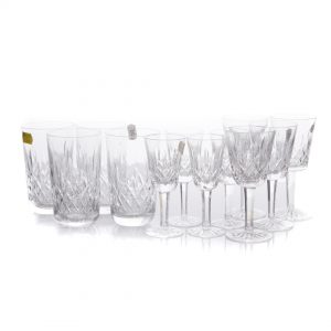 The name Waterford is synonymous with high-end crystal stemware, lot 7274 is the perfect example of classic Waterford elegance. This set of 12 Waterford Lismore Crystal Glassware would add a dash of glamour to any table.