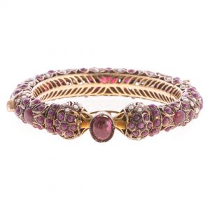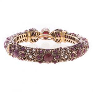 Lot 245: A Lady’s Ruby and Pearl Bangle Bracelet in Gold